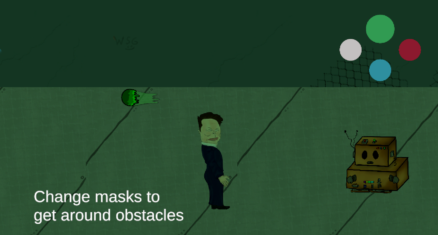 We started with the idea of making a game based on color masking and ended up laughing out loud telling Elon's misadventures.